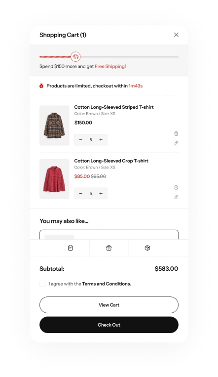 Boosts conversions with a countdown timer, free shipping calculator, and trust badges.